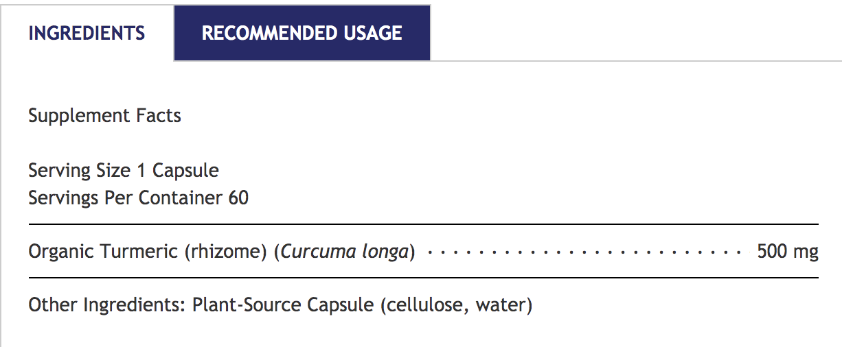 Premier Turmeric features organic, premier quality turmeric in its fullspectrum state. Thus, we do not specify a particular amount of curcumin in this product or assay for it. Concentration will vary per batch due to various factors, such as time of harvest. Our turmeric raw material is specifically selected due to its superior intrinsic bioenergetic properties as well as meeting our strict laboratory testing requirements.